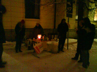 Here's a picture from the Kåren table we had at Lucia. Gabriella, David, Zeb, Camilla, John and Alain gave out about 90 cups of coffee and tea, about 120 Lucia buns, and 5 to 10 New Testaments. Just like when we had the first kåren table, people expressed a lot of gratitude for what we did - a great night! =)